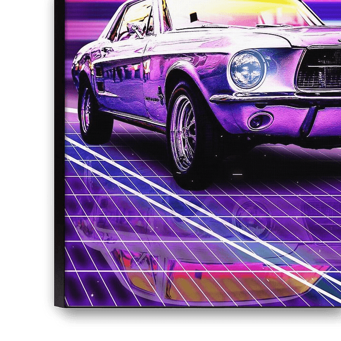 Beflügeln Sie Ihre Fantasie und entzünden Sie Ihre Sinne mit unserem Mustang Synthwave Style Poster. Der kultige Mustang galoppiert in eine digitale Traumwelt, in der sein zeitloses Design auf das hypnotisierende Glühen der Synthwave-Kunst trifft. Stellen Sie sich diese automobile Legende vor, wie sie durch eine von Neonlichtern beleuchtete Stadtlandschaft rast, während das Grollen ihres Motors mit den pulsierenden Beats der Synthwave-Musik synchronisiert wird. Jeder Winkel, jedes Detail wird zu einem visuellen Glanzstück, das die Essenz von Geschwindigkeit und Eleganz einfängt. Hängen Sie dieses Poster mit Stolz auf und tauchen Sie ein in die Verschmelzung von Retro-Futurismus und automobiler Exzellenz, wo die Straße vor Ihnen mit unendlichen Möglichkeiten winkt und der Mustang die Leidenschaft für die offene Straße und den Nervenkitzel der Fahrt neu entfacht.