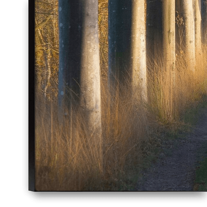 Bestelle dieses Landschafts-Wandbild Forest Lane im Herbst von Franke de Jong als Reproduktion auf Leinwand, Alu-Dibond, als Poster, Fototapete oder Acrylglasbild.