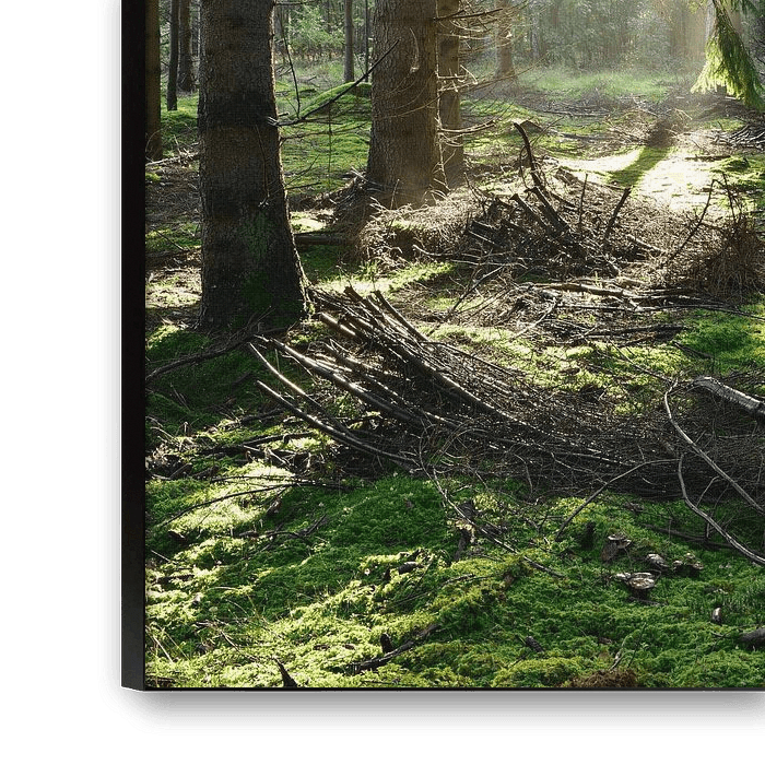 Fichtenwald im Licht der Sonne