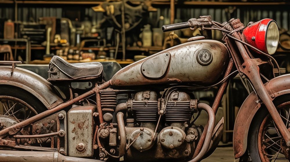 Foto eines alten Vintage-Motorrads im Hangar