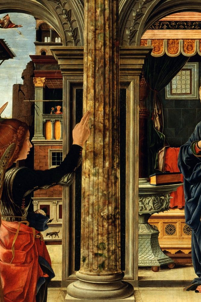 In einem wunderschönen Renaissancegebäude verkündet der Erzengel Gabriel Maria die Geburt Jesu (Lk 1,26-38). Getreu der Prophezeiung des Erzengels erscheint Gott, der Vater, am Himmel und der Heilige Geist in Gestalt einer Taube: "Der Heilige Geist wird über dich kommen und die Kraft des Höchsten wird dich überschatten. So wird der Heilige, der geboren wird, Sohn Gottes genannt werden (Lk 1,35)."