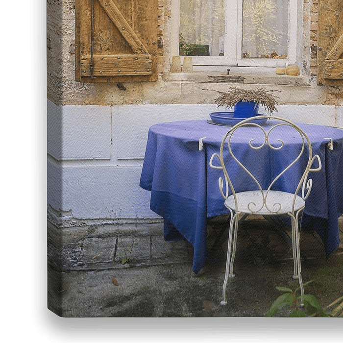 Bestelle dieses Stilleben Französische Szene von Christa Krus als Reproduktion auf Leinwand, Alu-Dibond, als Poster, Fototapete oder Acrylglasbild.