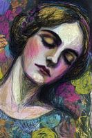 Bestelle dieses Blumen-Wandbild Frau Porträt mit Blumen | Frau Blumen von Abstraktes Gemälde als Kunstdruck auf Leinwand, Alu-Dibond, als Poster, Fototapete oder Acrylglasbild.