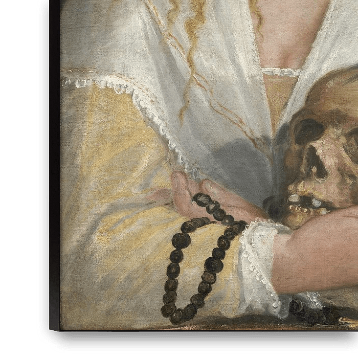 Bestelle Frau betrachtet einen Schädel, Alessandro Casolani als Reproduktion auf Leinwand, Alu-Dibond, als Poster, Fototapete oder Acrylglasbild.