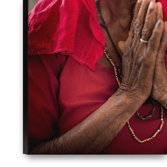Bestelle dieses Porträt Frau im Rattentempel in Deshnok, Indien von Paula Romein als Reproduktion auf Leinwand, Alu-Dibond, als Poster, Fototapete oder Acrylglasbild.
