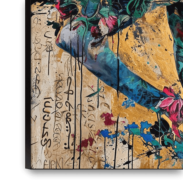 Details: Frau, urban, Street Art, Gold, Rot, Grün, Blau, Schwarz, Weiß, Bunte Parade