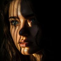 Bestelle dieses Porträt Frau in Licht und Schatten von Poster Art Shop als Reproduktion auf Leinwand, Alu-Dibond, als Poster, Fototapete oder Acrylglasbild.