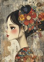 Frau mit Blumen im Haar von Blickfänger Gemälde