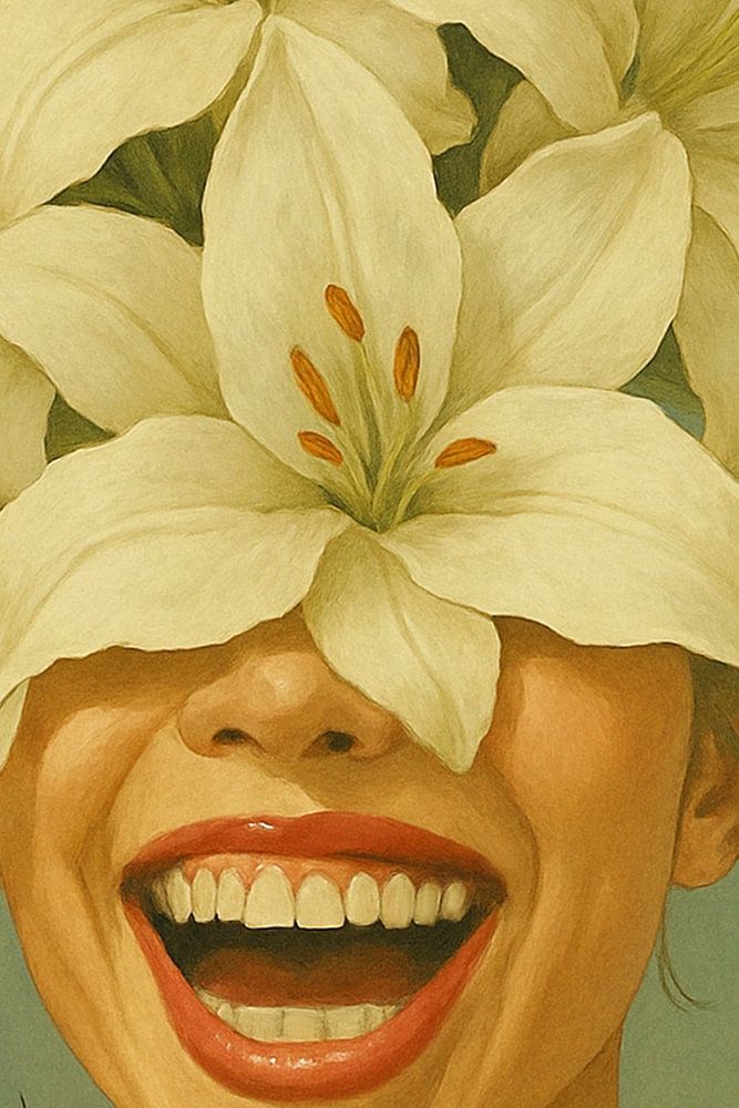 Pure Lebensfreude, eingefangen in einem blumigen Lächeln.