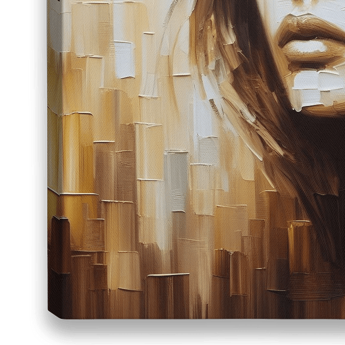 Tauchen Sie ein in die Welt des rustikalen Charmes mit diesem abstrakten Ölgemälde, das eine Frau mit Cowboyhut zeigt. In satten Braun- und Goldtönen wird ihr schroffer und doch raffinierter Look lebendig, verstärkt durch subtile Drips.... Dieses Werk bringt einen Hauch von abenteuerlicher Eleganz in jeden Raum.