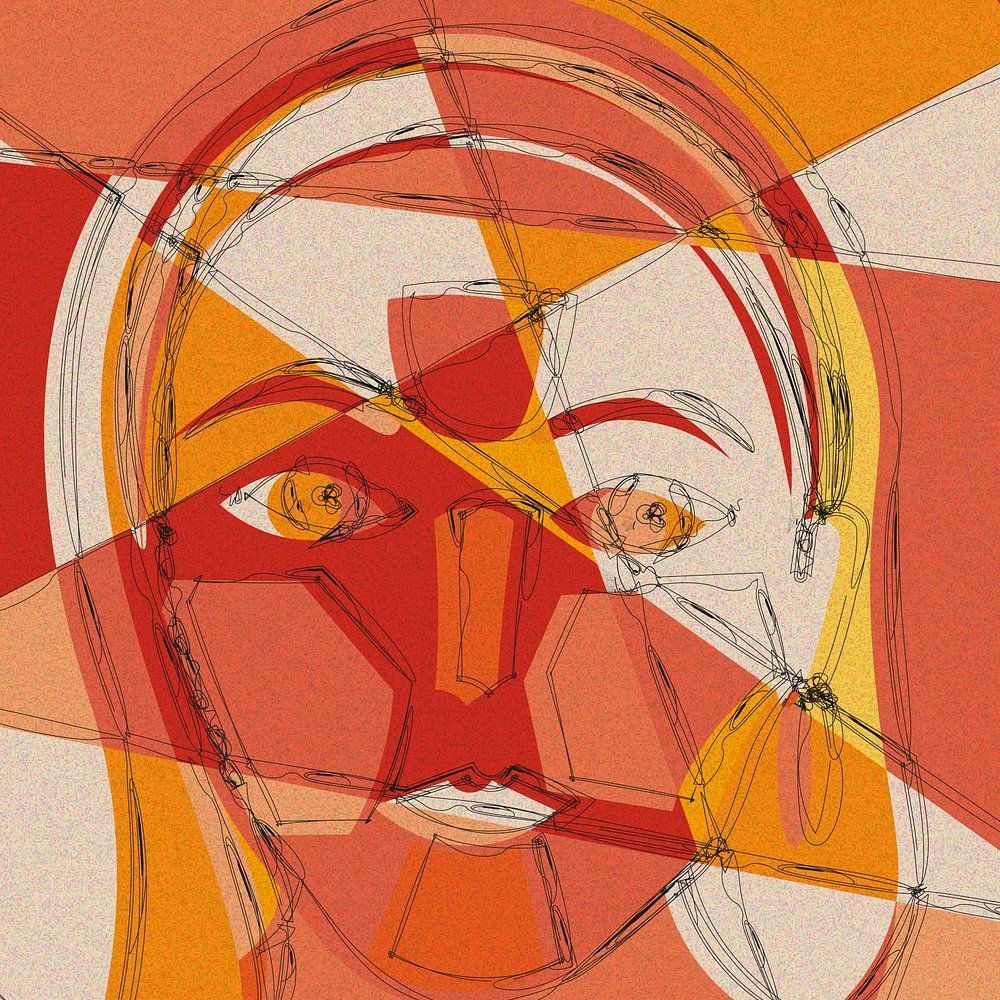 Eine Illustration mit warmen Farben einer Frau. Inspiriert von Frida.