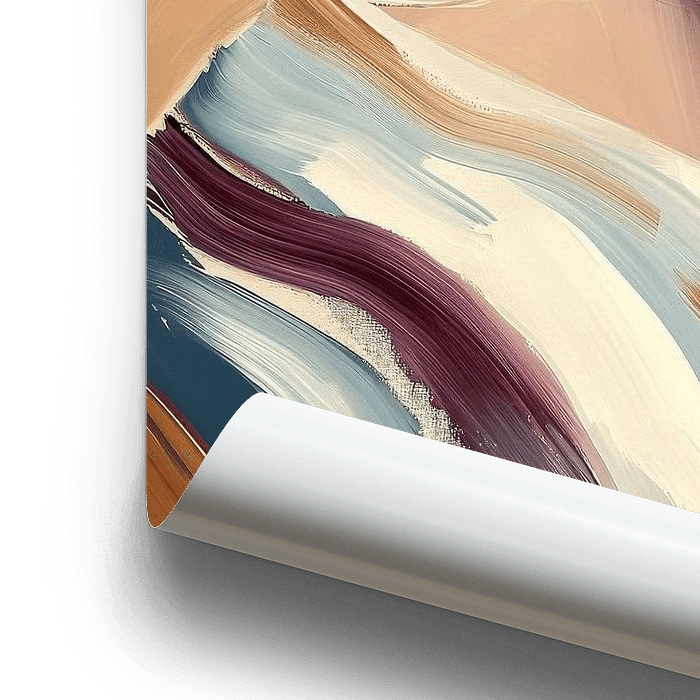 Abstraktes Gemälde einer Frau mit gestreiftem Bart. Grobe Pinselstriche machen es zu einem spannenden und faszinierenden Bild. Das Farbschema ist beige, lila, blau, weiß, aubergine. Passt zu verschiedenen Stilen und Trends.