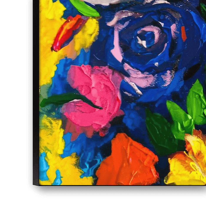 Dieses farbenfrohe Kunstwerk kombiniert das ausdrucksstarke Porträt einer Frau mit leuchtenden Blumen, die sie umgeben. Das Design strahlt Energie und Kreativität aus und ist perfekt für alle, die moderne Kunst lieben. Ideal, um ein Wohn- oder Esszimmer aufzuhellen und einen markanten Blickpunkt zu schaffen. Dieses Gemälde vereint eine Mischung aus leuchtenden Farben und abstraktem Ausdruck und verleiht jedem Raum eine einzigartige Atmosphäre.