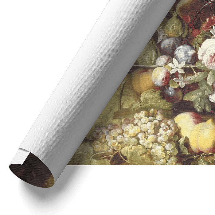 Frau nimmt Früchte aus einer Schale mit Blumen und Früchten, Abraham Brueghel (1669)