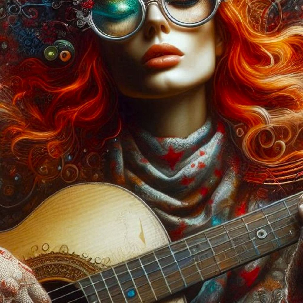 in diesen Porträts von Männern und Frauen, die Gitarre spielen, werden Sie von der etwas surrealen Umgebung überrascht sein, was für außergewöhnliche Werke, oft mit viel Farbe, aber auch ohne Farbe bleiben die Werke besonders.