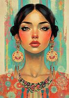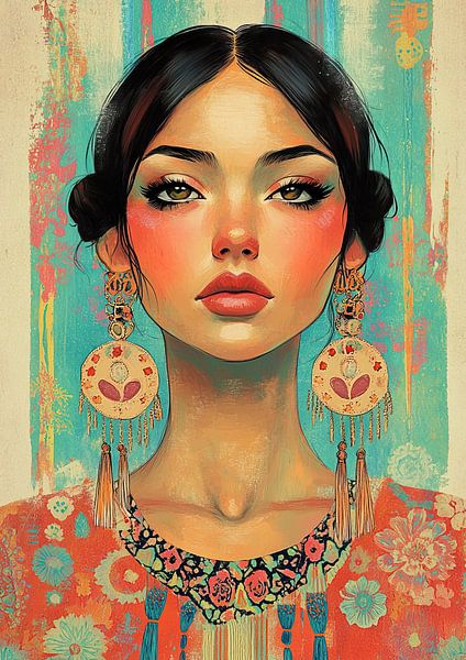Bestelle dieses Porträt Frauen Ohrringe von Zen und Mehr als Kunstdruck auf Leinwand, Alu-Dibond, als Poster, Fototapete oder Acrylglasbild.