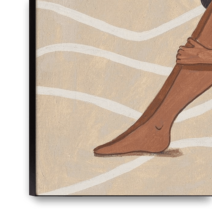 🌊 Sommer am Meer ☀️ Eine stilvolle und entspannte Illustration von zwei Frauen, die Rücken an Rücken am Strand sitzen. Die sanften Wellen im Hintergrund und die schlichten, warmen Farben verleihen dem Bild eine ruhige, sommerliche Atmosphäre. Ihre Badeanzüge mit Streifen und botanischen Mustern sorgen für einen verspielten und modernen…