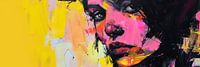 Dieses eindrucksvolle Frauenporträt besticht durch seine lebhaften Farben und expressiven Pinselstriche. Die kräftigen Gelb-, Pink- und Schwarztöne erzeugen einen starken visuellen Kontrast und verleihen dem Bild eine kraftvolle Ausstrahlung. Der intensive Blick der Frau zieht den Betrachter in ihren Bann und bringt eine dynamische…