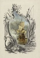 Ein schön gezeichnetes Ornament von Georg Hertel aus dem Jahr 1750 in Kombination mit dem Gemälde: Der Kanonenschuss, Willem van de Velde (II), um 1680.