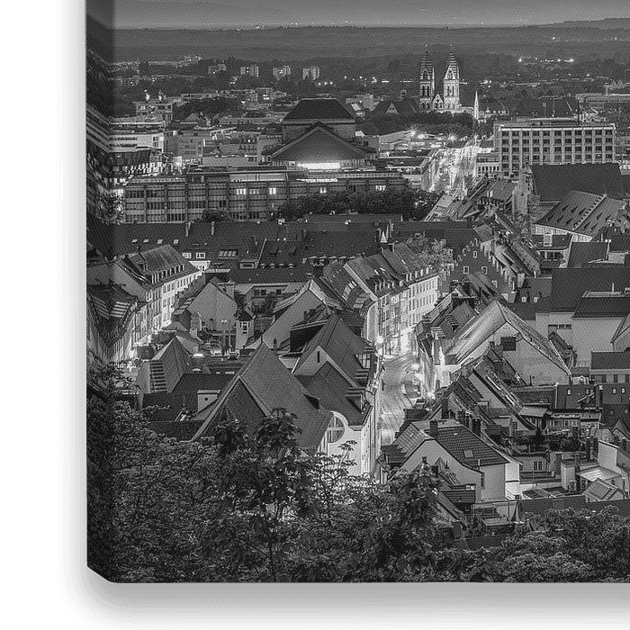 Altstadt und Dom der Stadt Freiburg in schwarzweiss. 90320378