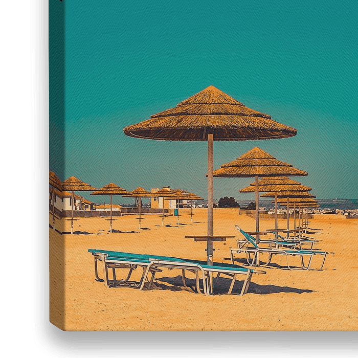 Bestelle das Foto Freie Liegestühle und ein Strand! von Jonas Röjestål als Reproduktion auf Leinwand, Alu-Dibond, als Poster, Fototapete oder Acrylglasbild.
