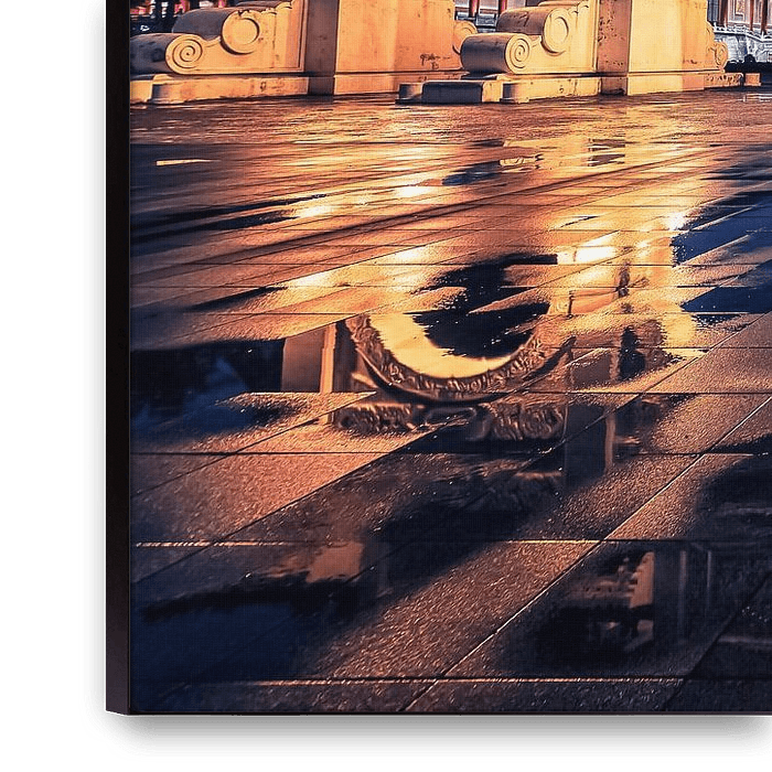 Ihre gewählte Kunst auf Leinwand, gespannt in einem Aluminiumrahmen. Schnell und einfach austauschbar für eine frische Ausstrahlung und ganz nach Ihren Wünschen.
