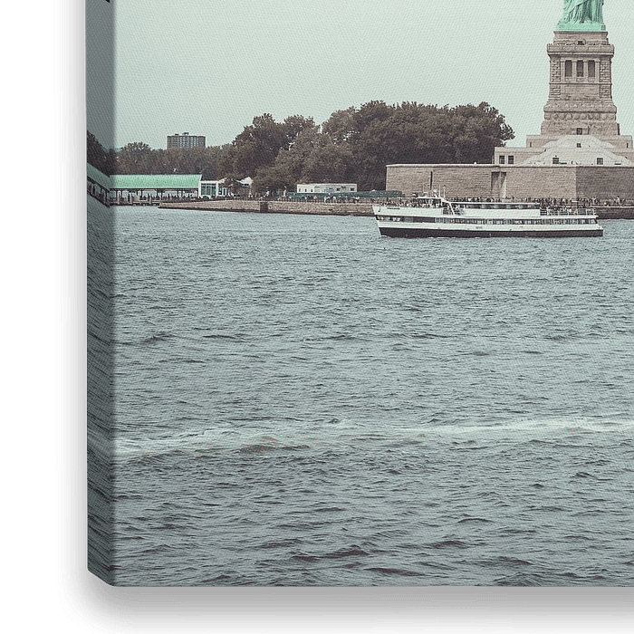 Bestelle das Foto Freiheitsstatue wird von Segelboot passiert von Mick van Hesteren als Reproduktion auf Leinwand, Alu-Dibond, als Poster, Fototapete oder Acrylglasbild.