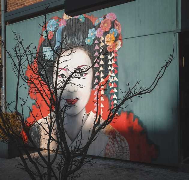 Straßenfotografie in Antwerpen. Auf dieser Perle bin ich auf der Straße gestoßen. Die Zeichnung hat mich sofort angesprochen. Aber es fehlte noch etwas. Deshalb habe ich die Zweige der Pflanze, die auf den Frühling wartet, hinzugefügt. Das verleiht dem Bild das gewisse Etwas.