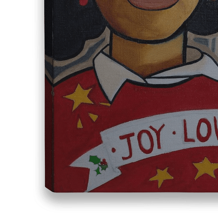 Dies ist eine fröhlichere Pop-Art-Version des Gemäldes American Gothic von Grant Wood. Es stellt zwei Personen mit Weihnachtspullovern vor einem Haus dar. Es gehört zu einer Reihe von Ölgemälden, in denen ich klassische Gemälde neu interpretiere. Die Frage, die ich mir bei jedem Klassiker stelle, ist: Wenn Grant Wood ein Pop-Art-Maler wäre, wie hätte er dieses Bild gemalt? Dieses Bild würde zu klassischen oder scheinbar traditionellen Menschen passen, aber mit einem Schuss Verrücktheit.