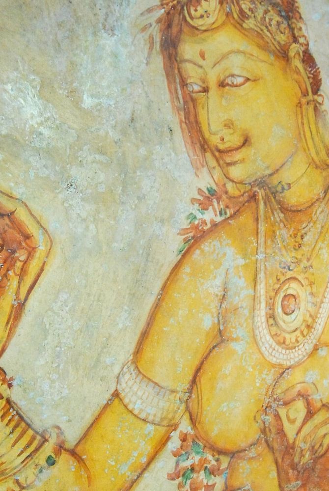 Sigiriya ist eine Festung aus dem 5. Jahrhundert, die auf einem Felsmassiv errichtet wurde und zum UNESCO-Weltkulturerbe gehört. Hier einige der farbenfrohen Fresken an der Mauer.