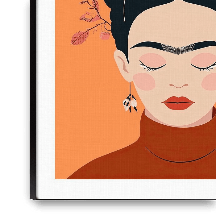 Bestelle dieses Porträt Frida "Orange" von Niklas Maximilian als Reproduktion auf Leinwand, Alu-Dibond, als Poster, Fototapete oder Acrylglasbild.