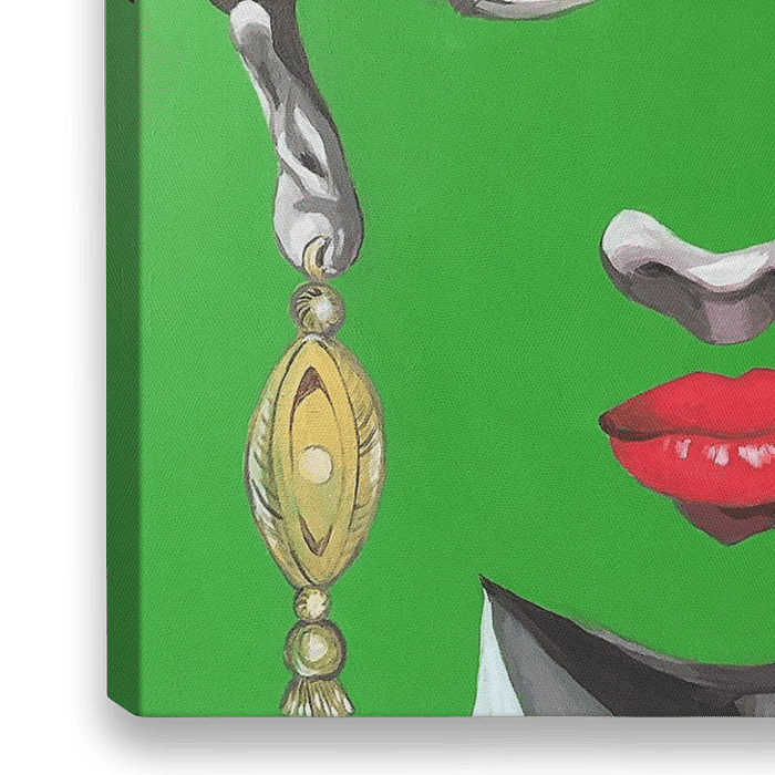 Porträt der mexikanischen Künstlerin Frida auf der Grundlage einer Schwarz-Weiß-Fotografie. Das Original ist mit Acrylfarbe auf Leinwand gemalt.