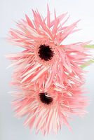Bestelle dieses Blumen-Wandbild Frieden: Rosa Gerbera mit Reflexion (Pastellfarben) von Marjolijn van den Berg als Reproduktion auf Leinwand, Alu-Dibond, als Poster, Fototapete oder Acrylglasbild.