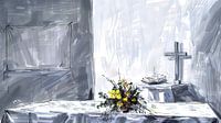 Friedliche Kapelle mit Blumenstrauß von Frank Heinz