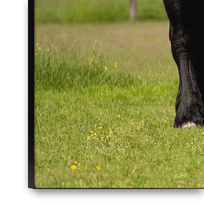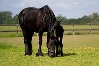 Bestelle das Foto Friesisches Pferd mit Fohlen von Special Moments MvL als Reproduktion auf Leinwand, Alu-Dibond, als Poster, Fototapete oder Acrylglasbild.