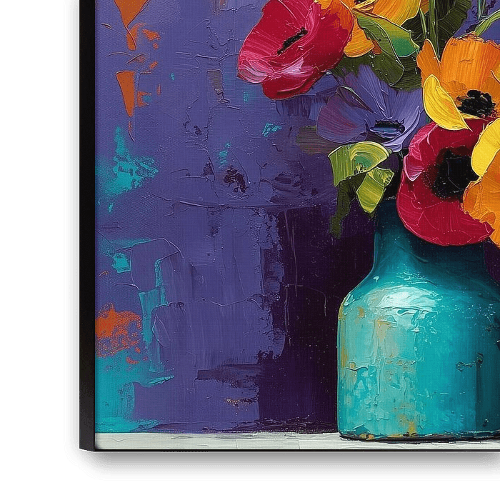 Diese 'Freshly Picked Wild Flowers in Low Vase' ist eine farbenfrohe und fröhliche Ergänzung für jedes Interieur. Ob es nun eine nostalgische Verbindung zu den reichen Stillleben der Alten Meister oder eine Faszination für Wildblumen ist. Dieses Stück wird mit Sicherheit die Aufmerksamkeit auf sich ziehen. Holen Sie sich mit diesem ungewöhnlichen und auffälligen Kunstwerk ein Stück natürliche Schönheit in Ihr Zuhause!