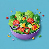 Lebendiges und farbenfrohes Scherenschnitt-Design einer Salatschüssel mit Gemüse. Perfekt für die Küchendekoration.