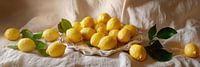 Bestelle dieses Stilleben Frische Zitronen auf einem Tablett von Poster Art Shop als Reproduktion auf Leinwand, Alu-Dibond, als Poster, Fototapete oder Acrylglasbild.