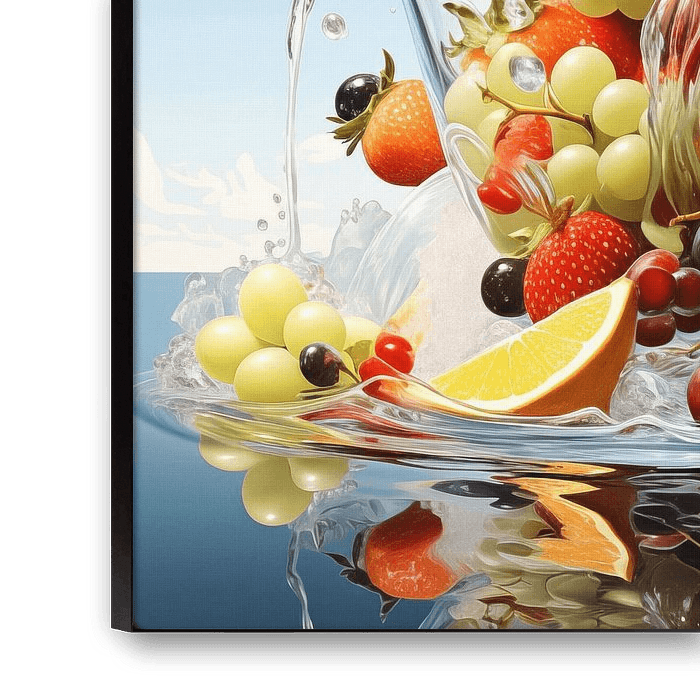 Bestelle das digitale Kunst Bild Frisches Obst in einer Schale mit Wasser von Schwarzer Kaffee als Reproduktion auf Leinwand, Alu-Dibond, als Poster, Fototapete oder Acrylglasbild.