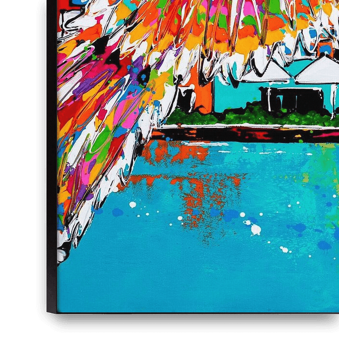 Ihre gewählte Kunst auf Leinwand, gespannt in einem Aluminiumrahmen. Schnell und einfach austauschbar für eine frische Ausstrahlung und ganz nach Ihren Wünschen.