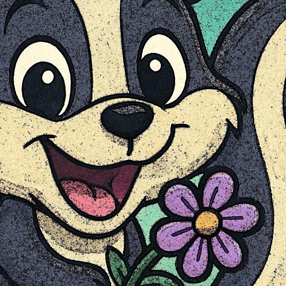 Bestelle dieses Blumen-Wandbild Fröhliches Stinktier im Regen von Jose Lok als Reproduktion auf Leinwand, Alu-Dibond, als Poster, Fototapete oder Acrylglasbild.