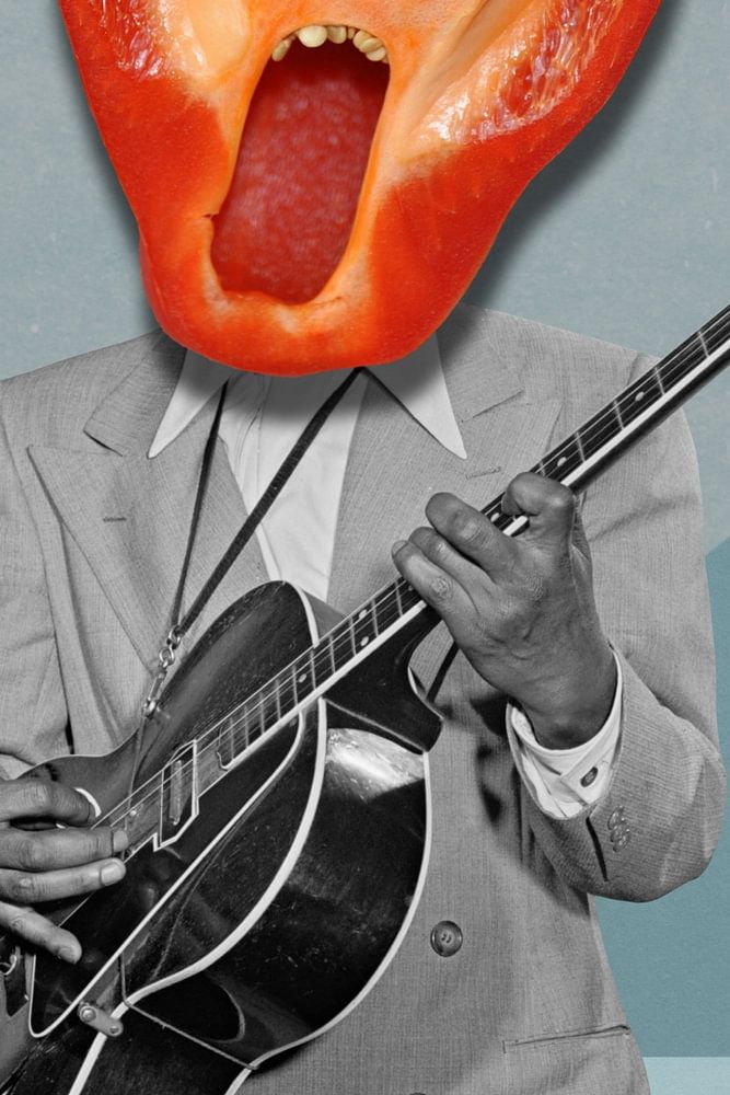 Ein singender und Gitarre spielender halber Pfeffer.
