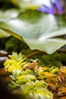 Bestelle das Foto Frosch in einer grünen Oase von Laurien De Grande als Reproduktion auf Leinwand, Alu-Dibond, als Poster, Fototapete oder Acrylglasbild.