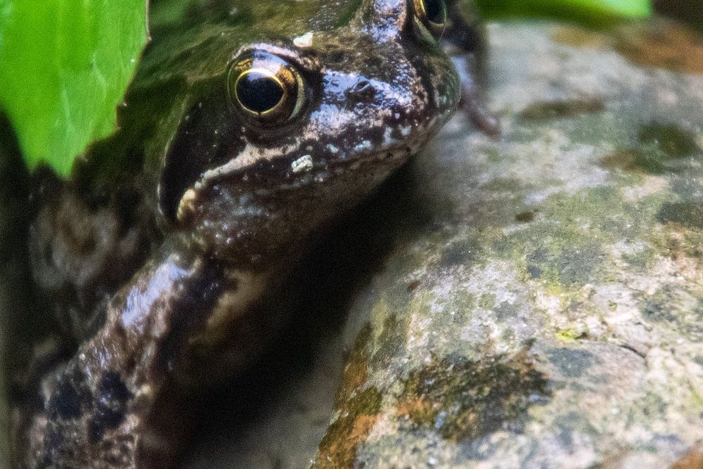 Über "Frosch zwischen 'peekaboo' zwischen Steinen"