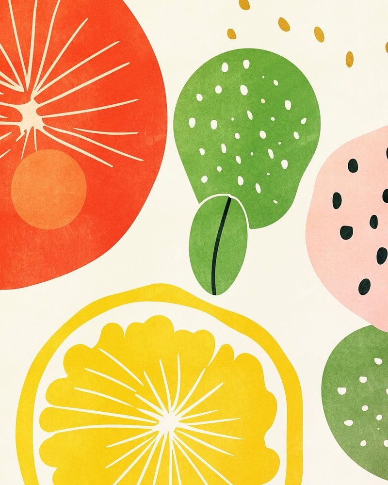 Das abstrakte digitale Gemälde "Fruitful Business" verleiht Ihrem Interieur einen modernen und farbenfrohen Look!