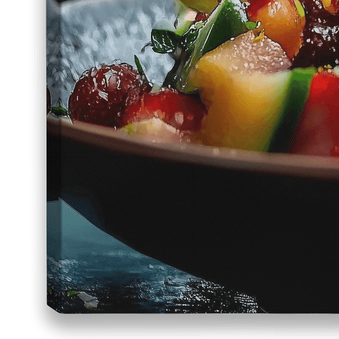 Eine Explosion aus leuchtenden Farben! Saftige Früchte tanzen in einer sinnlichen Komposition, während frische Kräuter und spritzige Zitrusnoten die Sinne beleben. Diese dynamische Darstellung eignet sich perfekt für die Küche, wo sie Appetit und kreative Kochlust anregt. Ein frischer Hauch von Natur, der jeden Raum belebt!
