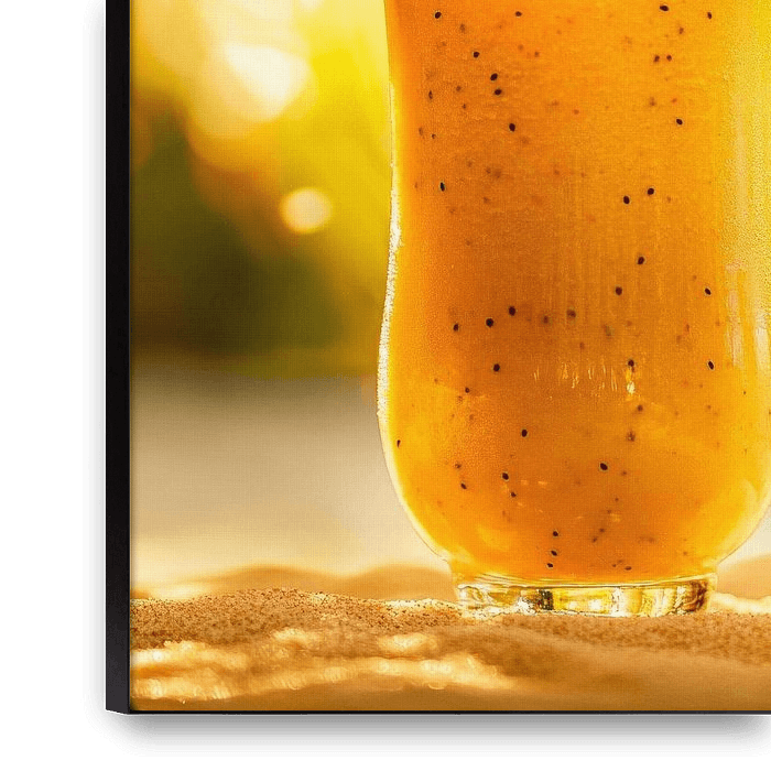 Ein sonniger Fruchtcocktail, der nach Sommer und Entspannung schreit! Die leuchtend gelbe Flüssigkeit, garniert mit einer exotischen Kiwi und einem bunten Schirmchen, weckt sofort Urlaubsgefühle. Ideal für die Küche oder das Wohnzimmer, bringt dieses Bild fröhliche Stimmung und eine erfrischende Atmosphäre in jeden Raum. Ein festlicher…