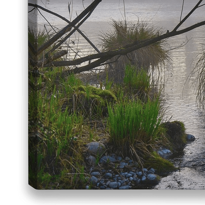 Bestelle dieses Landschafts-Wandbild Früher Morgen in den Rheinauen im Grand Ried von Tanja Voigt als Reproduktion auf Leinwand, Alu-Dibond, als Poster, Fototapete oder Acrylglasbild.