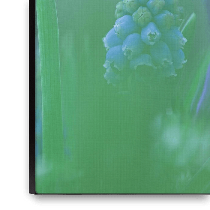 Spring Glow fängt den magischen Moment ein, wenn sich die Frühlingsblumen im ersten weichen Sonnenlicht öffnen. Im Vordergrund eine blaue Weintraube in scharfen Details, im Hintergrund ein violetter Krokus, der verträumt ins Grün übergeht. Die Farben fließen harmonisch in einem Bild zusammen, das Frische, Zärtlichkeit und das…