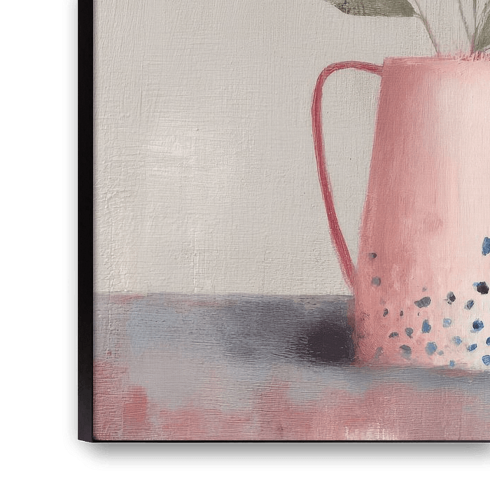 Ein floraler Kunstdruck mit einem lässig gepflückten Feldblumenstrauß in einem hellblauen Krug. Die weichen Pinselstriche und subtilen Farbverläufe verleihen diesem Werk eine warme, ruhige und sehr natürliche Ausstrahlung. Für ein Interieur mit einer poetischen und kreativen Stimmung.